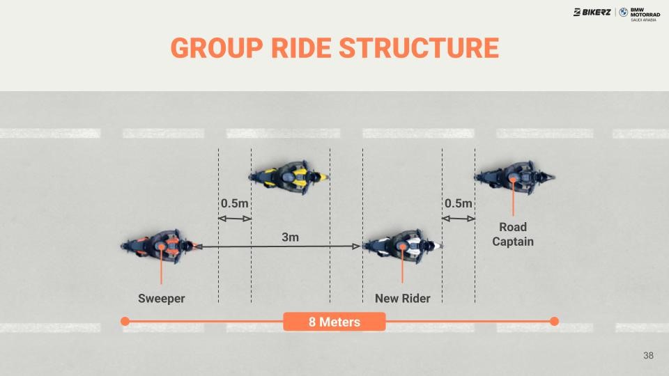 - مراعاة اختلاف قدرات الدراجات لضمان عدم التخلف عن الرايد.