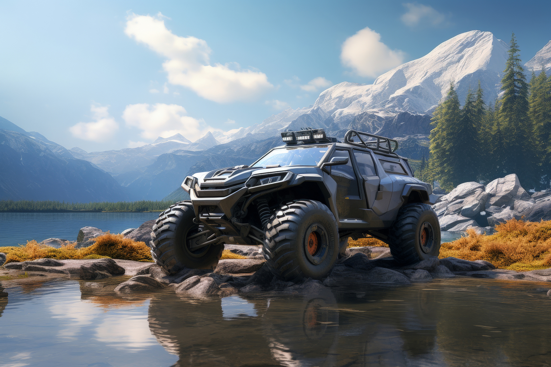 3d rendering driverless car or autonomous car plug in with ev charging station