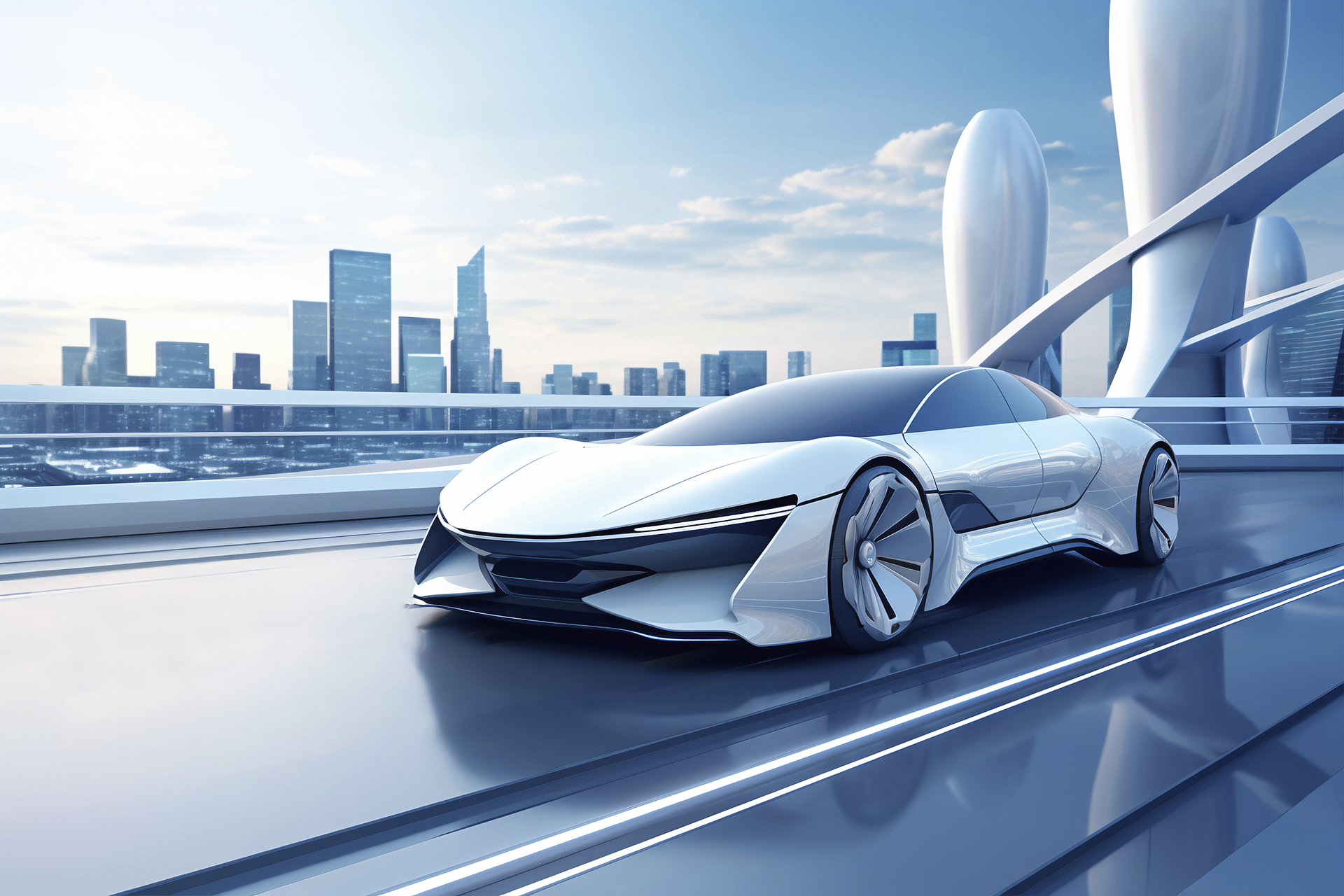 3d rendering driverless car or autonomous car plug in with ev charging station
