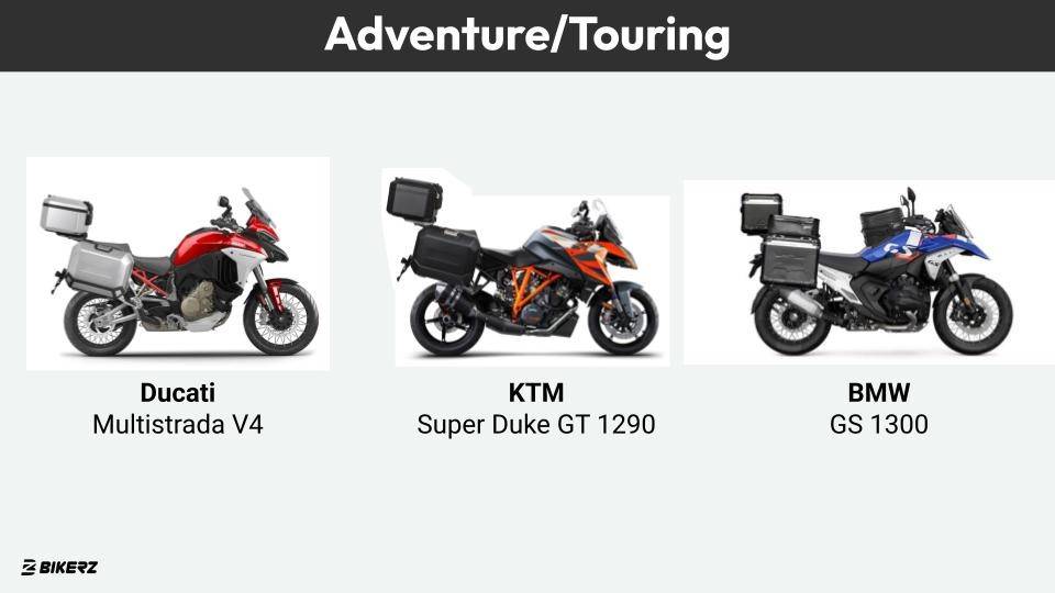 | Adventure | 390 Adventure, 890 Adventure, 1290 Super Adventure R | Built for long-distance treks and off-road exploration |