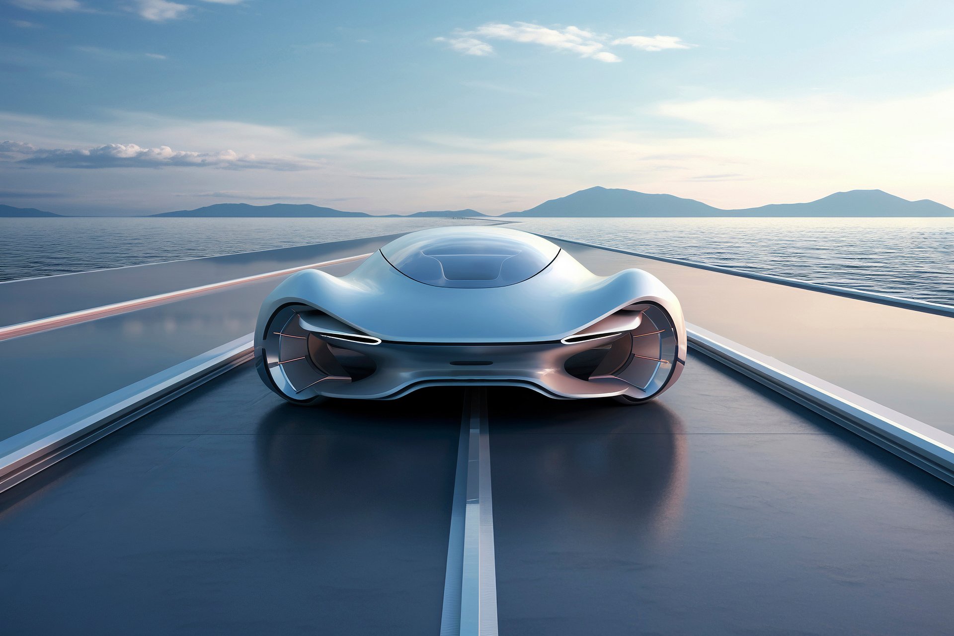 3d rendering driverless car or autonomous car plug in with ev charging station